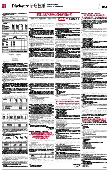 浙江世纪华通车业股份有限公司2012年度报告摘要及公告(系列)