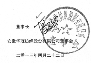 安徽华茂纺织股份有限公司2013第一季度报告 2013-04-24 来源:证券时报网 作者: