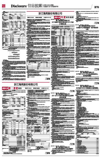 证券代码:002203 证券简称:海亮股份 公告编号:2013-020 浙江海亮股份有限公司2012年度报告摘要及公告(系列) 2013-04-24 来源:证券时报网 作者: