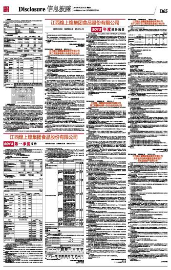 江西煌上煌集团食品股份有限公司2013第一季度报告