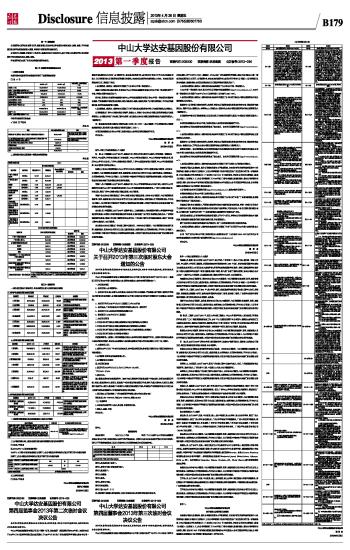 第三节 重要事项 一、报告期主要会计报表项目、财务指标发生重大变动的情况及原因 ■ 二、重要事项进展情况及其影响和解决方案的分析说明 ■ 三、公司或持股5%以上股东在报告期内或持续到报告期内的承诺事项 □ 适用√不适用 四、对2013年1-6月经营业绩的预计 2013年1-6月预计的经营业绩情况:归属于上市公司股东的净利润为正值且不属于扭亏为盈的情形 归属于上市公司股东的净利润为正值且不属于扭亏为盈的情形 ■ 五、证券投资情况 □ 适用√不适用 中山大学达安基因股份有限公司 董事长:何蕴韶 2013年4月25日