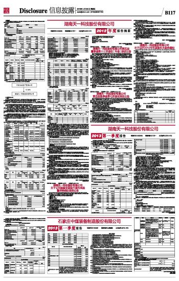 湖南天一科技股份有限公司2013第一季度报告 2013-04-26 来源:证券时报网 作者: