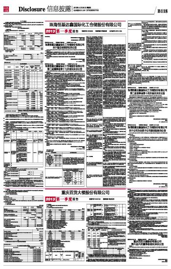 珠海恒基达鑫国际化工仓储股份有限公司2013第一季度报告