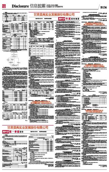甘肃莫高实业发展股份有限公司2013第一季度报告