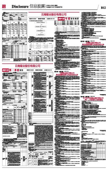 云南锡业股份有限公司2012年度报告摘要及公告(系列)