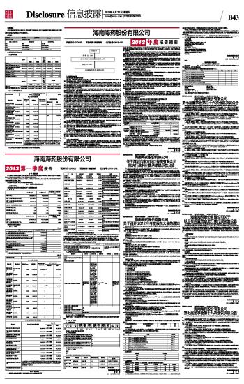 海南海药股份有限公司2012年度报告摘要及公告(系列)