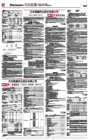 吉林紫鑫药业股份有限公司2012年度报告摘要及公告(系列)