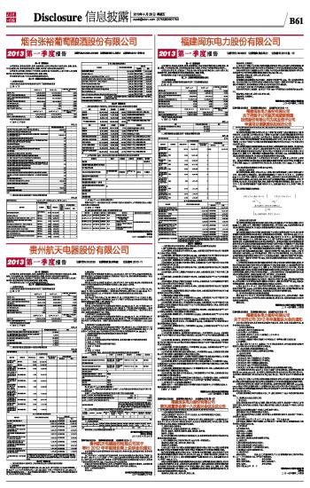 烟台张裕葡萄酿酒股份有限公司2013第一季度报告