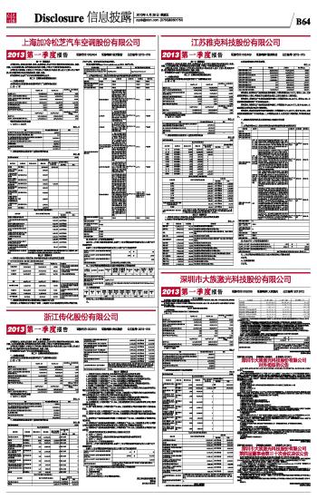 上海加冷松芝汽车空调股份有限公司2013第一季度报告
