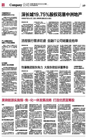深长城19.75%股权花落中洲地产中洲地产现为公司二股东,称将择机增持成为大股东 2013-06-14 来源:证券时报网 作者:郑昱