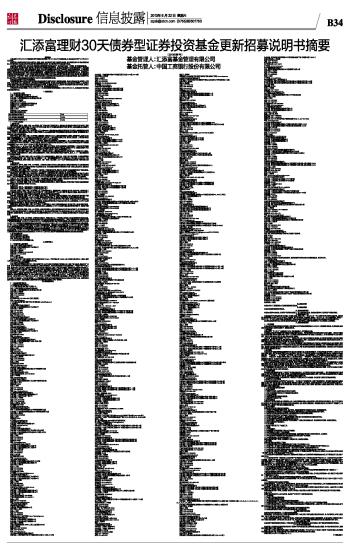 汇添富理财30天债券型证券投资基金更新招募说明书摘要