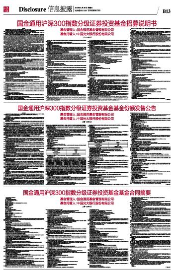 国金通用沪深300指数分级证券投资基金招募说明书 2013-06-26 来源:证券时报网 作者: