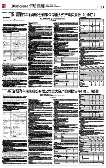 证券代码:000678 股票简称:襄阳轴承 上市地:深圳证券交易所 襄阳汽车轴承股份有限公司重大资产购买报告书(修订)摘要 2013-07-16 来源:证券时报网 作者: