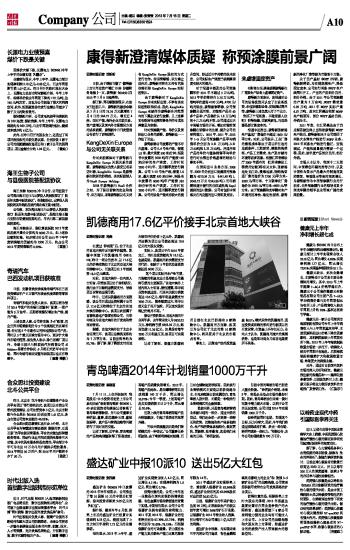 青岛啤酒2014年计划销量1000万千升