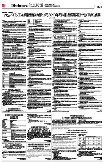 江苏玉龙钢管股份有限公司2013年限制性股票激励计划(草案)摘要