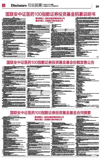国联安中证医药100指数证券投资基金招募说明书 2013-07-17 来源:证券时报网 作者: