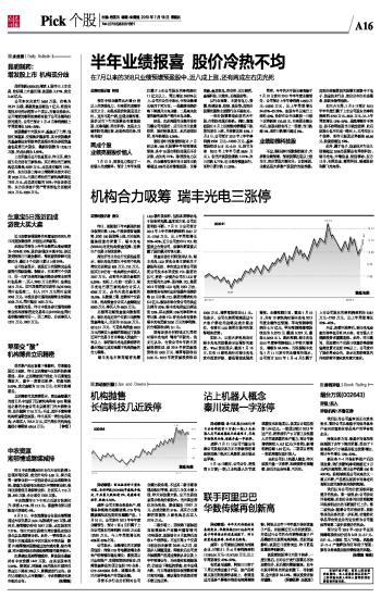 半年业绩报喜 股价冷热不均