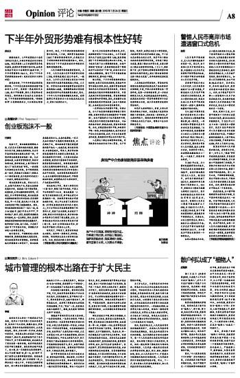 地产中介玩猫腻,营销常用假信息。 价格商讨很扯淡,合同签订频违纪。 陷阱困扰购房者,猫鼠博弈打劫棋。 楼市监管手太软,人民群众不满意。 本版导读: