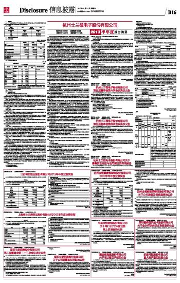 杭州士兰微电子股份有限公司2013半年度报告摘要 2013-07-27 来源:证券时报网 作者: