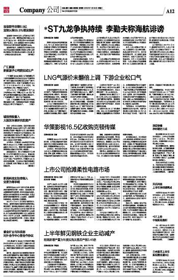 LNG气源价未翻倍上调 下游企业松口气 2013-07-30 来源:证券时报网 作者:余胜良