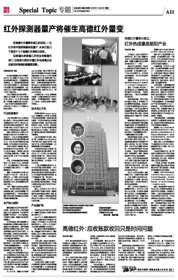 高德红外董事长黄立:红外热成像是朝阳产业 2013-07-30 来源:证券时报网 作者:曾灿