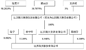 股票代码:600220 股票简称:江苏阳光 江苏阳光股份有限公司 详式权益变动报告书 上市公司名称:江苏阳光股份有限公司 股票上市地点:上海证券交易所 股票简称:江苏阳光 股票代码:600220 信息披露义务人之一:陈丽芬 住所:江苏省江阴市居民新村6幢401室 通讯地址:江苏省江阴市居民新村6幢401室 股份变动性质:增加 信息披露义务人之二:陆宇 住所:上海市徐汇区淮海西路343号15号楼502室 通讯地址:上海市徐汇区淮海西路343号15号楼502室 股份变动性质:增加 信息披露义务人之三:孙宁玲 住所:上海市徐汇区淮海西路343号15号楼502室 通讯地址:上海市徐汇区淮海西路343号15号楼502室 股份变动性质:增加 签署日期:二〇一三年八月五日 信息披露义务人声明 一、本次信息披露义务人为陈丽芬女士、陆宇先生、孙宁玲女士,本报告书系信息披露义务人依据《中华人民共和国公司法》、《中华人民共和国证券法》、《上市公司收购管理办法》、《公开发行证券的公司信息披露内容与格式准则第15号—权益变动报告书》、《公开发行证券的公司信息披露内容与格式准则第16号—上市公司收购报告书》及相关的法律、法规和规范性文件的要求编写。 二、依据《中华人民共和国证券法》、《上市公司收购管理办法》及《公开发行证券的公司信息披露内容与格式准则第15号—权益变动报告书》的规定,本报告书已全面披露了信息披露义务人在江苏阳光股份有限公司(以下简称“上市公司”)中拥有权益的股份。截至本报告书签署之日,除本报告书披露的持股信息外,信息披露义务人没有通过任何其他方式在上市公司拥有权益。 三、信息披露义务人签署本报告已获得必要的授权和批准。 四、本次权益变动是根据本报告书所载明的资料进行的。除信息披露义务人所聘请的专业机构外,没有委托或者授权任何其他人提供未在本报告书中列载的信息和对本报告书做出任何解释或者说明。 五、信息披露义务人没有受托持有上市公司权益情形,本报告书已披露所有与本次收购权益相关的安排。 释义 ■ 本详式权益变动报告书中除另有说明,下列词语具有以下含义: 第一节 信息披露义务人介绍 一、信息披露义务人基本情况 姓名:陈丽芬 性别:女 国籍:中国 身份证号码:320219195907054049 出生日期:1959年07月05日 住所:江苏省江阴市居民新村6幢401室 通讯地址:江苏省江阴市居民新村6幢401室 姓名:陆宇 性别:男 国籍:中国 身份证号码:32021919751020401X 出生日期:1975年10月20日 住所:上海市徐汇区淮海西路343号15号楼502室 通讯地址:上海市徐汇区淮海西路343号15号楼502室 姓名:孙宁玲 性别:女 国籍:中国 身份证号码:320106197512241247 出生日期:1975年12月24日 住所:上海市徐汇区淮海西路343号15号楼502室 通讯地址:上海市徐汇区淮海西路343号15号楼502室 二、信息披露义务人最近五年任职情况 陈丽芬女士:2009年8月至今任江苏阳光集团有限公司董事长;1999年2月至今任江苏阳光股份有限公司董事长、总经理;目前在其他公司任职情况详见下表: ■ 陆宇先生:2011年12月至今任江苏阳光生态园科技有限公司总经理;2013年4月至今任江苏阳光生态园科技有限公司董事长;2010年1月至今任上海神力科技有限公司董事长。 孙宁玲女士:2012年7月前在上海华山医院工作,2012年7月辞职至今在家待业。 三、信息披露义务人最近五年内的行政处罚、刑事处罚、重大民事诉讼或仲裁 截至本报告签署日的最近五年内,信息披露义务人未受过与证券市场相关的行政处罚、刑事处罚,也没有涉及与经济纠纷有关的重大民事诉讼或者仲裁。 四、信息披露义务人资格审查情况 截至本报告书签署日,信息披露义务人没有负有数额较大、到期未清偿且处于持续状态的债务;最近3年没有重大违法行为或者涉嫌有重大违法行为;最近3年没有严重的证券市场失信行为;不存在《公司法》第一百四十七条规定情形;不存在法律、行政法规规定以及中国证监会认定的不得收购上市公司的其他情形。信息披露义务人能够按照《收购办法》第五十条的规定提供相关文件。 五、信息披露义务人控制的核心企业及核心业务、关联企业及主营业务 截至本报告书签署之日,陆宇先生和孙宁玲女士除本次受让的江苏阳光的股权外,未持有其他公司股权,也未实际控制其他公司。 陈丽芬女士间接持有江苏阳光集团有限公司38.7075%的股权,且为江苏阳光集团有限公司的董事长,江苏阳光集团有限公司的主要核心企业及业务如下表: ■ 六、信息披露义务人在其他上市公司及金融机构的投资情况 截至本报告书签署之日,陆宇先生和孙宁玲女士没有在其他上市公司及金融机构投资。 陈丽芬女士间接持有阳光集团38.7075%的股权,且为阳光集团的董事长,阳光集团全资子公司江苏紫金电子集团有限公司持有海润光伏25.27%的股权,如下表: ■ 七、信息披露义务人与阳光集团之间的关系 阳光控股持有阳光集团100%的股权,陆克平持有阳光控股58.2925%的股权,是阳光集团的实际控制人;阳光集团实际控制人陆克平先生与陆宇先生的关系为父子;陆宇先生和孙宁玲女士的关系为夫妻。陈丽芬女士持有阳光控股38.7075%的股权,且为阳光集团董事长。阳光集团与陈丽芬女士、陆宇先生、孙宁玲女士构成一致行动人,并与陈丽芬女士、陆宇先生、孙宁玲女士签订了《一致行动协议》。 第二