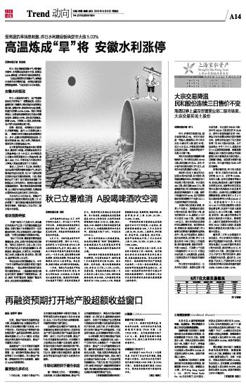 秋已立暑难消 A股喝啤酒吹空调 2013-08-08 来源:证券时报网 作者:邱玥