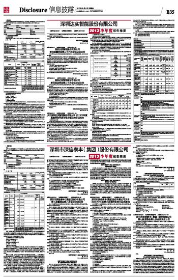 深圳市深信泰丰(集团)股份有限公司2013半年度报告摘要 2013-08-08 来源:证券时报网 作者:
