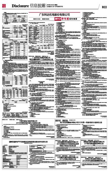 广东科达机电股份有限公司2013半年度报告摘要 2013-08-08 来源:证券时报网 作者: