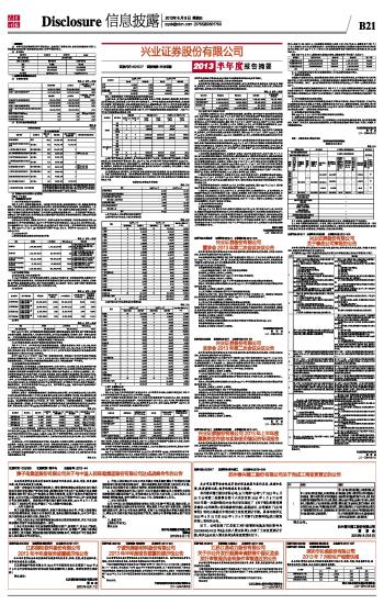 兴业证券股份有限公司2013半年度报告摘要 2013-08-08 来源:证券时报网 作者: