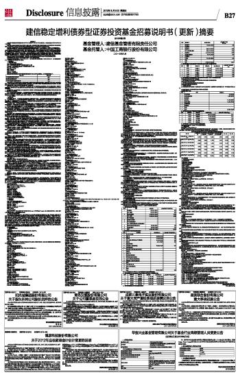 建信稳定增利债券型证券投资基金招募说明书(更新)摘要