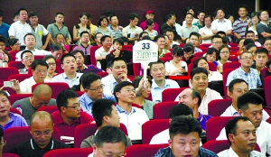 8月21日下午,南京市国土局推出9地块,引得44家开发商到场参战,参与土地拍卖人数之多几乎创下今年土地市场新高。图为拍卖现场的火爆场景。 IC/图文 本版导读: