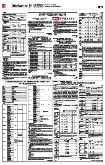 希努尔男装股份有限公司2013半年度报告摘要 2013-08-23 来源:证券时报网 作者: