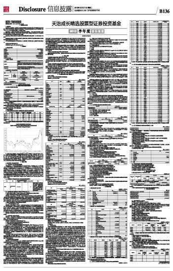 天治成长精选股票型证券投资基金2013半年度报告摘要 2013-08-27 来源:证券时报网 作者: