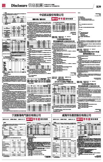 证券代码:002120 证券简称:新海股份 公告编号:2013-017 宁波新海电气股份有限公司2013半年度报告摘要 2013-08-27 来源:证券时报网 作者: