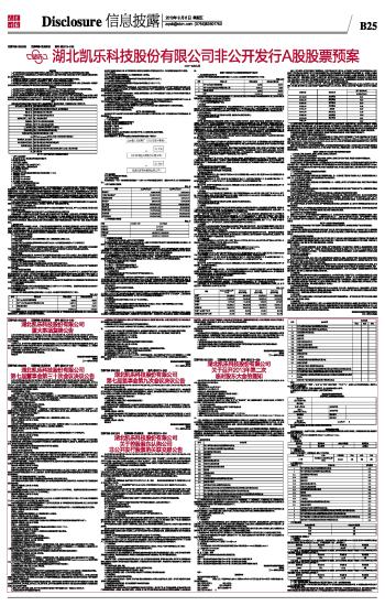 证券代码:600260 证券简称:凯乐科技 编号:临2013-033 湖北凯乐科技股份有限公司非公开发行A股股票预案二〇一三年九月 2013-09-06 来源:证券时报网 作者: