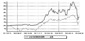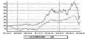(5)报告期末前十名股票中存在流通受限情况的说明 本基金本报告期末前十名股票中不存在流通受限情况。 十二、基金的业绩 本基金管理人依照恪尽职守、诚实信用、勤勉尽责的原则管理和运用基金资产,但不保证基金一定盈利,也不保证最低收益。基金的过往业绩并不代表其未来表现。投资有风险,投资者在做出投资决策前应仔细阅读本基金的招募说明书。本基金合同生效日为2012年7月25日,基金业绩数据截至2013年6月30日。 一、基金份额净值增长率及其与同期业绩比较基准收益率的比较