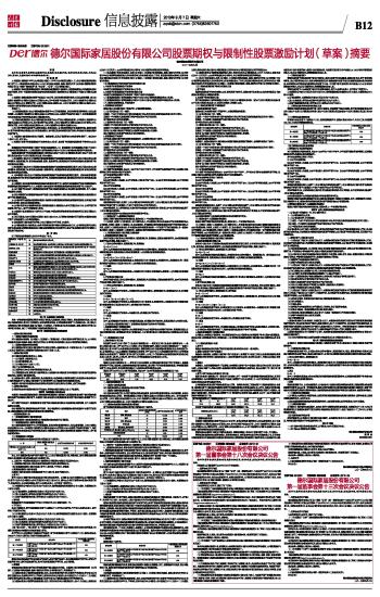 | 德尔国际家居股份有限公司股票期权与限制性股票激励计划(草案)摘要 德尔国际家居股份有限公司 | 2013-09-07 | |
