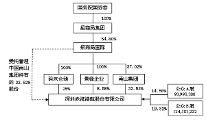 (上接B9版) 7、轩运发展有限公司 本公司间接持有该公司100%的股权,注册资本1万港元。2013年6月30日资产总额16,404.35万元,净资产920.69万元。 8、深圳赤湾港集装箱有限公司 本公司直接和间接持有该公司100%的股权。该公司主营集装箱装卸业务,主要从事外贸集装箱驳船中转、中小型外贸集装箱班轮装卸业务,注册资本28,820万元。2013年6月30日资产总额103,291.65万元,净资产55,811.15万元。 9、深圳赤湾货运有限公司 本公司直接和间接持有该公司100%的股权。该公司主要从事港区集装箱拖车服务,注册资本1,500万元。2013年6月30日资产总额7,094.16万元,净资产3,648.05万元。 10、赤湾集装箱码头有限公司 本公司直接和间接持有该公司55%的股权。该公司主营集装箱装卸业务,以挂靠国际集装箱班轮航线为主,注册资本9,530万美元。2013年6月30日资产总额253,707.96万元,净资产176,449.65万元。 11、深圳赤湾轮船运输有限公司 本公司直接和间接持有该公司100%的股权。该公司专业从事港作拖轮服务,注册资本2400万元。2013年6月30日资产总额15,130.61万元,净资产6,177.30万元。 12、赤湾海运(香港)有限公司 本公司直接和间接持有该公司100%的股权。该公司主营海运代理业务,注册资本80万港元。2013年6月30日资产总额1,401.58万元,净资产500.86万元。 (四)本公司主要联营及合营企业基本情况 1、中海港务(莱州)有限公司 本公司持有该公司40%的股份,该公司主要从事港口服务业务,注册资本为17,640.77万美元。2013年6月30日资产总额212,020.69万元,净资产186,116.81万元。 2、招商局国际信息技术有限公司 本公司持有该公司23.16%的股份,该公司主要从事网络服务业务,注册资本为5,000万元。2013年6月30日资产总额9,226.80万元,净资产6,273.49万元。 3、招商局保税物流有限公司 本公司持有该公司40%的股份,该公司主要从事仓储服务业务,注册资本为7亿元。2013年6月30日资产总额163,169.46万元,净资产66,597.19万元。 4、Media Port Investments Limited 本公司持有该公司50%的股份,该公司主要从事投资业务,注册资本为10美元。2013年6月30日资产总额26,947.38万港元,净资产26,818.07万港元。 五、 本公司控股股东情况和实际控制人基本情况 (一)发行人控股股东基本情况 截至2013年6月30日,招商局国际通过全资子公司码来仓储间接持有本公司161,190,933股A股股份(持股比例25%),通过全资子公司景锋企业间接持有本公司55,314,208股B股股份(持股比例8.58%),两者合计持有本公司股份比例为33.58%。同时,招商局国际通过受托管理南山集团持有本公司209,687,067股的A股股份(持股比例32.52%),从而控制本公司66.10%权益。 ■ 招商局国际现是中国最大以至世界领先的公共港口营运商,于中国沿海主要枢纽港建立了较为完善的港口网络群,所投资或投资并拥有管理权的码头遍及香港、深圳、宁波、上海、青岛、天津、厦门湾及湛江等集装箱枢纽港,并布局南亚、非洲等地港口。截至目前,招商局国际共投资参股的港口超过20个、集装箱泊位130余个,完成集装箱吞吐量近6,000万标准箱,中国大陆市场占有率超过三成。 (二)发行人实际控制人 公司实际控制人为招商局集团有限公司。 (三)发行人、控股股东及实际控制人的股权关系 ■ 六、 董事、监事和高级管理人员 本公司现有董事9名、监事5名。本公司设有总经理1名、副总经理2名、财务负责人1名、董事会秘书1名。 (一)现任董事、监事、高级管理人员基本情况 截至本募集说明书签署日,本公司董事、监事及管理人员基本情况如下: ■ 注:(1)张建国于2011年2月至2012年12月任本公司副总经理,2013年1月至今担任本公司董事,不再从公司领取薪酬;(2)张方自2013年1月至今担任本公司财务总监,因此2012年度其未作为高管从公司领取薪酬。 (二)现任董事、监事、高级管理人员简历 1、董事简历 郑少平,董事长,大连海事大学国际海商法研究生毕业,获英国威尔士大学工商管理硕士。曾任中国南山集团副总经理、深圳赤湾港集装箱有限公司董事长、本公司副总经理、总经理和副董事长,现任招商局国际有限公司副总经理兼执行董事、招商局保税物流有限公司副董事长、蛇口集装箱码头有限公司董事长及赤湾集装箱码头有限公司董事长。1999年5月起担任本公司董事,2004年9月至2011年1月担任本公司总经理,2010年4月当选公司副董事长,2011年1月至今担任本公司董事长。 张日忠,董事,毕业于中国中央财经大学和英国威斯敏斯特大学,获经济学学士学位和工商管理硕士学位,英国特许会计师公会会员。从事财务会计工作已超过二十年,具有丰富的财务管理经验。历任招商局集团有限公司财务部副总经理,招商局控股(英国)有限公司财务总监。2005年加入招商局国际有限公司,现任招商局国际有限公司副总经理兼财务总监。2013年1月至今担任本公司董事。 邓伟栋,董事,1994年毕业于南京大学自然地理专业,获博士学位,2002年9月于加拿大Dalhousie大学海洋管理系获得硕士学位。拥有丰富的港口经营和管理经验。曾任职海南省洋浦经济开发区管理局,并历任中国南山开发(集团)股份有限公司发展部总经理、赤湾集装箱码头有限公司副总经理、深圳妈湾港务有限公司总经理及深圳妈港仓码有限公司总经理。2009年7月加入招商局国际有限公司,现任招商局国际有限公司副总经理。2013年1月至今担任本公司董事。 王志贤,董事,毕业于天津大学和