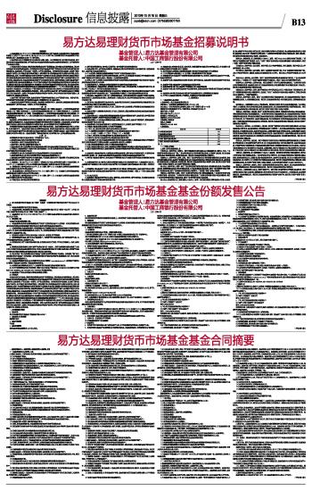 易方达易理财货币市场基金招募说明书 2013-10-16 来源:证券时报网 作者: