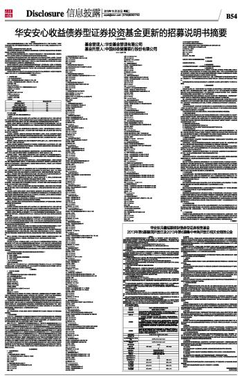华安安心收益债券型证券投资基金更新的招募说明书摘要