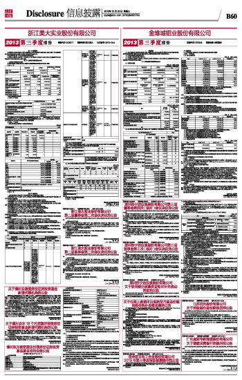 证券代码:002677 证券简称:浙江美大 公告编号:2013-055 浙江美大实业股份有限公司2013第三季度报告 2013-10-23 来源:证券时报网 作者: