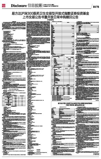 易方达沪深300医药卫生交易型开放式指数证券投资基金上市交易公告书暨开放日常申购赎回公告