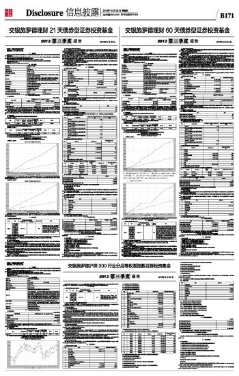 交银施罗德理财60天债券型证券投资基金2013第三季度报告 2013-10-24 来源:证券时报网 作者: