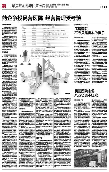药企争投民营医院 经营管理受考验 2013-10-24 来源:证券时报网 作者:李雪峰