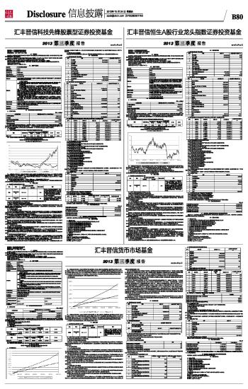 汇丰晋信恒生A股行业龙头指数证券投资基金2013第三季度报告2013年9月30日 2013-10-24 来源:证券时报网 作者: