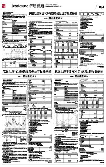 农银汇理深证100指数增强型证券投资基金2013第三季度报告