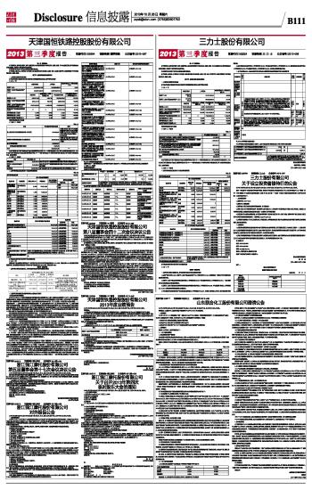 三力士股份有限公司2013第三季度报告 2013-10-26 来源:证券时报网 作者: