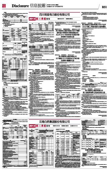 四川明星电力股份有限公司2013第三季度报告 2013-10-26 来源:证券时报网 作者: