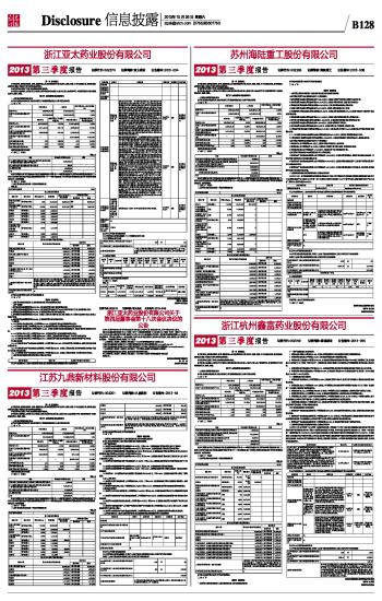 浙江杭州鑫富药业股份有限公司2013第三季度报告